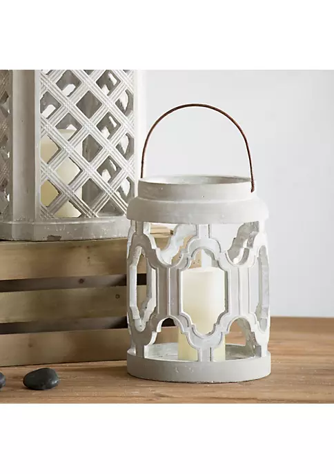 Gray cement lantern offers refined style
