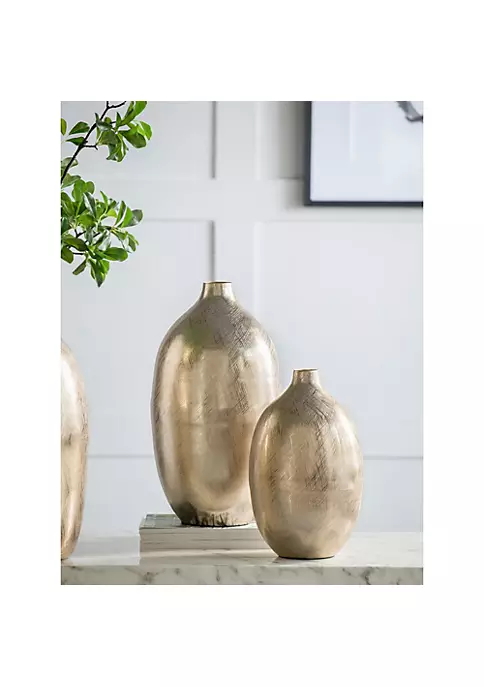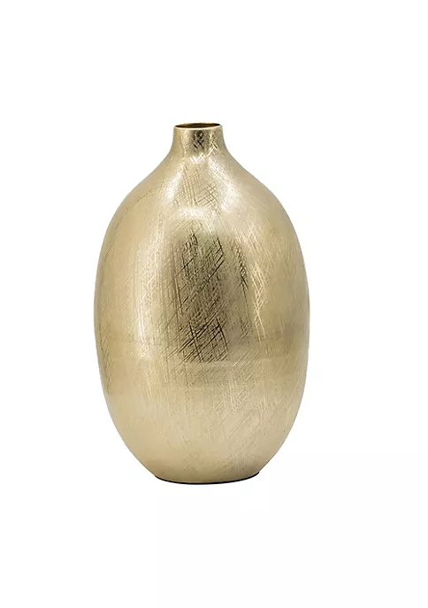 Features a simple transitional design vase with gold streak finish