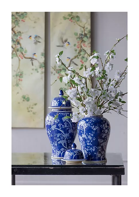 Give your interiors a sophisticated oriental vibe with this stunning ginger jar. This ginger jar is perfect to be used as a centerpiece or decorative accent. Consider clustering this jar with similarly colored vases or mix and match with varying sizes and hues for a look that is custom and unique.