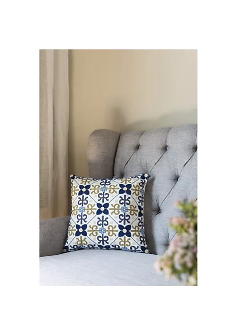 Square pillow features an embroidered design