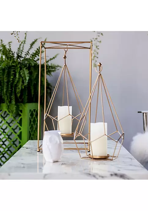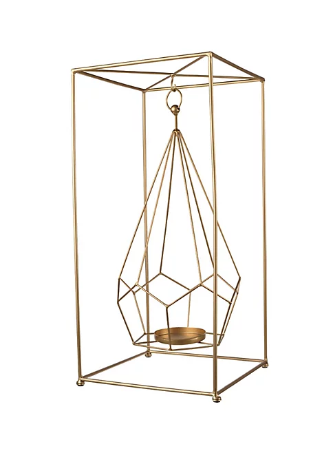 Light up your room with this sleek geometrical candleholder. Carefully constructed of iron with a lush gold finish. Great decorative accent for your master bedroom place on a mantle for a sharp modern look or incorporate into a radiant table centerpiece.