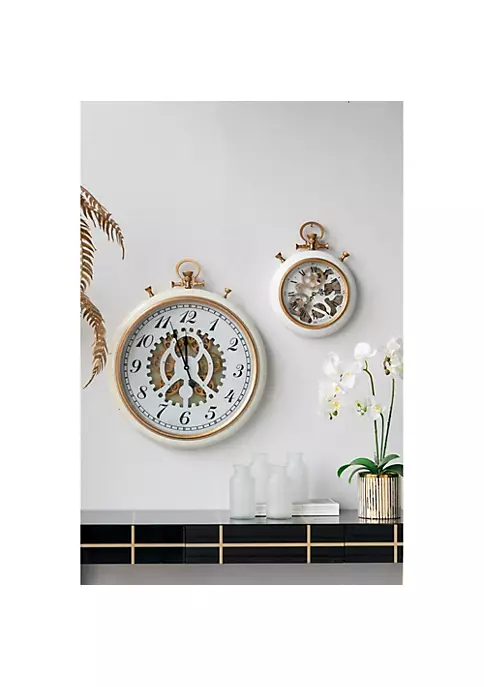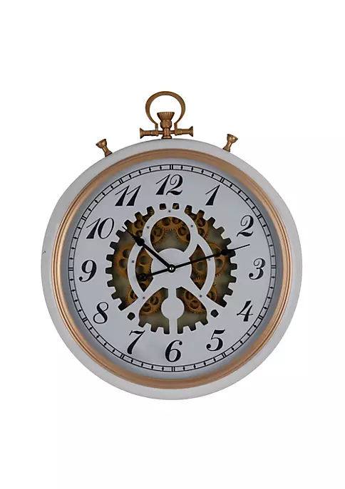 Recreate a remarkable fashion with this traditional pocket watch look-a-like wall clock. The metallic texture of this piece makes it an accenting decor to your room. Grab this product for fun and functional innovation for those who love classic style.