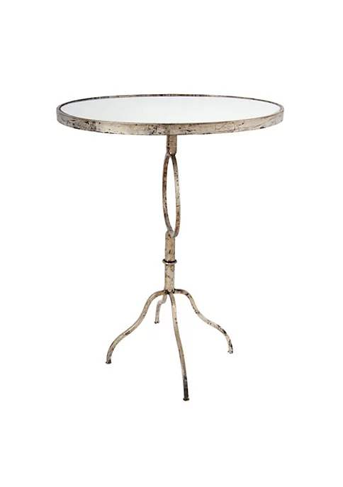 Features a thin metal frame encircling a mirrored glass top; rich gold finish
