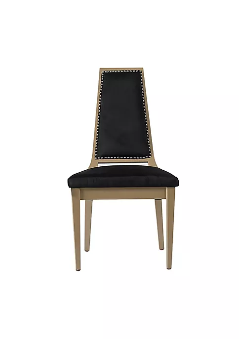 This High Tapered Back Upholstered Side Chair features a squared taper back with contrasting nailhead trim. It offers the utmost comfort and style with its contemporary design and sturdy construction. Soon to be your favorite spot to sit back and unwind.