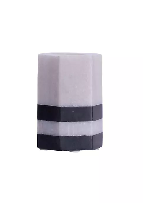 Constructed from stripes of white and black marble