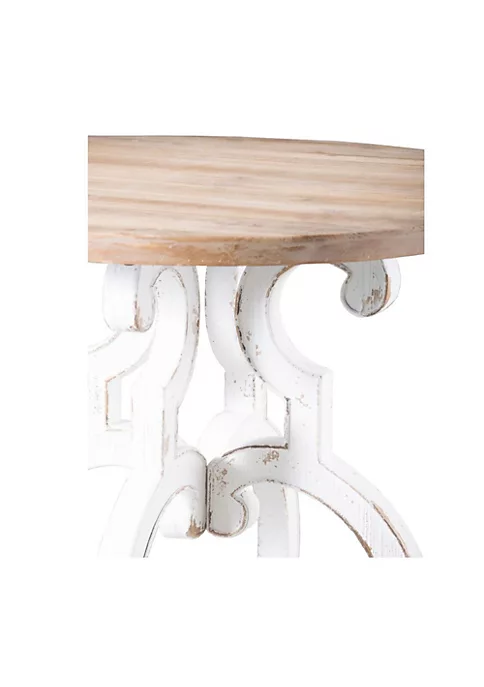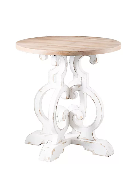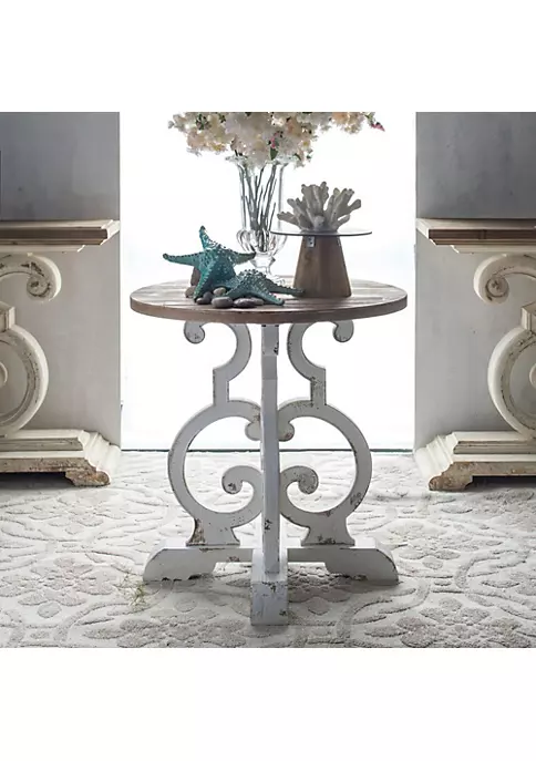 Casual elegance of the antique warmth of wood and white base gives the table a charming appeal