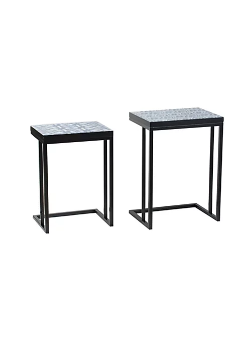 The distinctive set of tables is to catch the eye and spark conversation. Use these them as a comfortable place to set a cup of coffee or plate of food or top them with decorative accents. Its smooth rich shades of blue and white crisp pattern construction is an impressive theme that offers a minimalist take on home decor.
