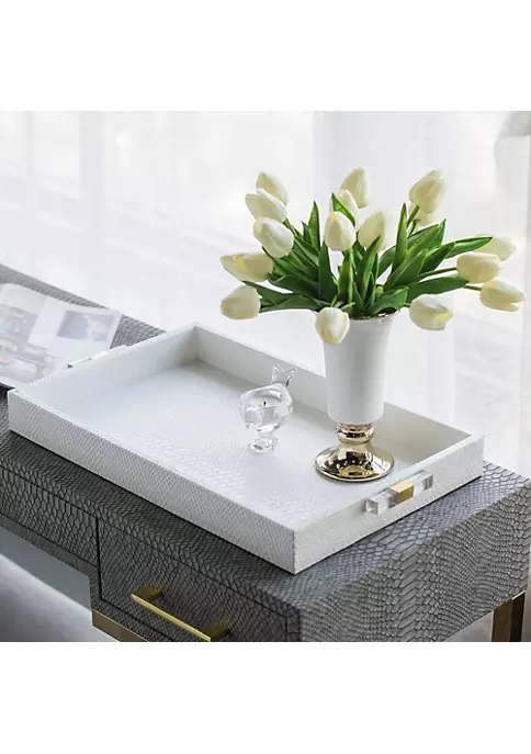 Sometimes even transitional looks can be attractive! This beautiful tray can blend with a variety of interior styles making it a worthy choice. Striking both style and functionality this tray is perfect for a touch of added sophistication to any space!