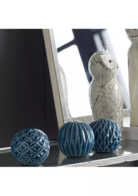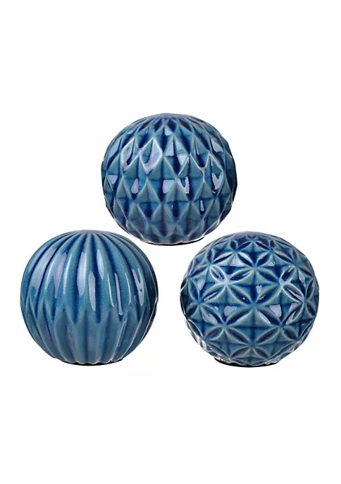 Create a unique accent with these set of three charming ceramic balls. Each ball features a three different pattern with a gentle gradient effect. This piece is ideal for floral displays and other decorative arrangements.