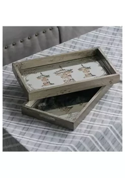 Cheap ⌛ A & B Home Set of 2 Gray and White Classic Vintage Rectangular Trays 20.25″ 🔔