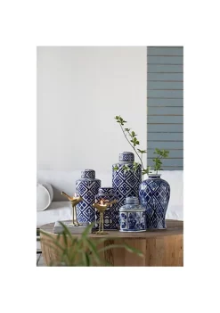 Deals 😀 A & B Home 10″ Blue and White Vintage Style Square Lidded Jar 🛒